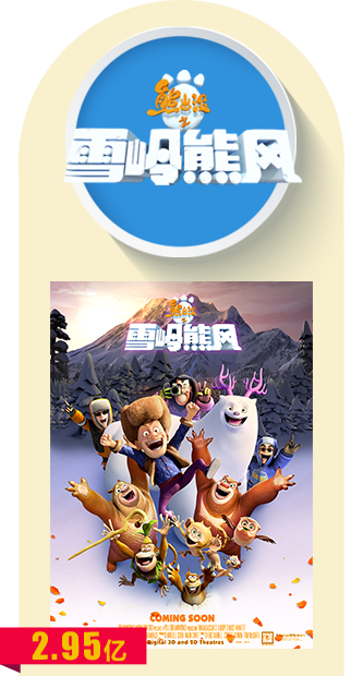 列中國動漫指數榜首位。原創出品9部《熊出沒》系列動畫電影,國內上映總票房超57億,成為
