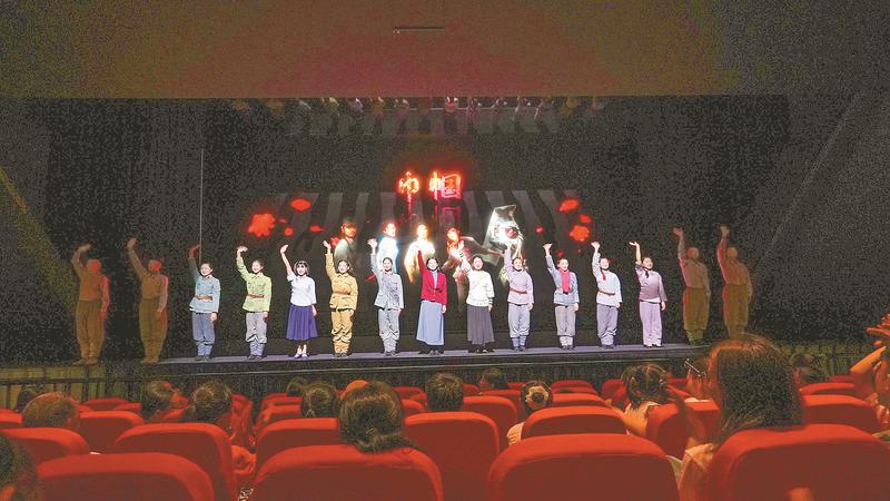 尾聲主題音樂響起時,臺上倒下的巾幗英雄們一個個站起來,身后屏幕上出現(xiàn)她們真實的歷史照片,我的淚水再也抑制不住了。抹眼淚的同時,我往四周掃了一圈,發(fā)現(xiàn)同樣被打動的人還不少。