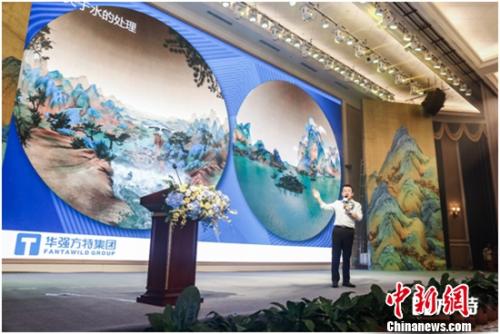 在《飛越千里江山》品鑒會上,丁亮分享了《飛越千里江山》主創(chuàng)團(tuán)隊突破難關(guān),打造這道古典藝術(shù)饕餮盛宴的創(chuàng)作歷程。他表示:“王希孟繪制《千里江山圖》時先后進(jìn)行了五道工序,方特主創(chuàng)人員則通過反復(fù)觀察原作,仔細(xì)分中國畫的勾勒、皴染技巧,根據(jù)原畫繪制的大概步驟,先后進(jìn)行了十次數(shù)字著色,最終完美實現(xiàn)了傳世國寶的3D數(shù)字復(fù)刻”。