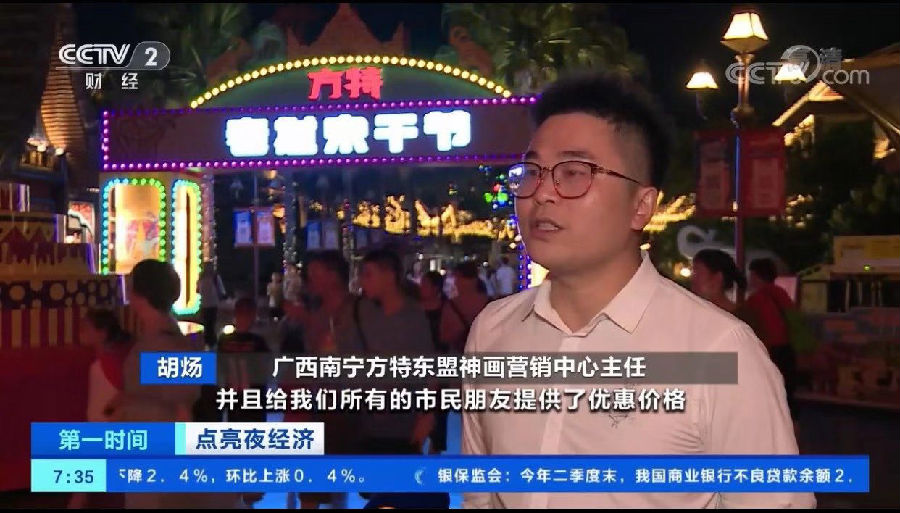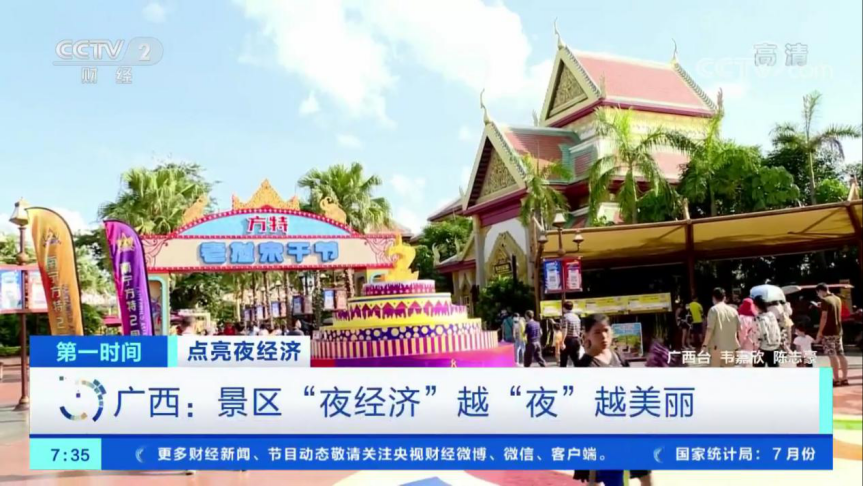 央視新聞頻道和財經(jīng)頻道的新聞報道指出,今年暑期,多地景區(qū)的夜游新場景、新玩法、新體驗紛紛搶占文旅消費市場,也更加貼近了廣大游客的需求。在新聞報道中,央視著重介紹了南寧方特的夜場活動:“南寧方特東盟神畫開啟了13小時日夜暢玩模式,當(dāng)夜幕降臨,花車大巡游、美食夜市、嘻哈電音演出等紛紛登場,帶給游客赴全新的游玩體驗。”