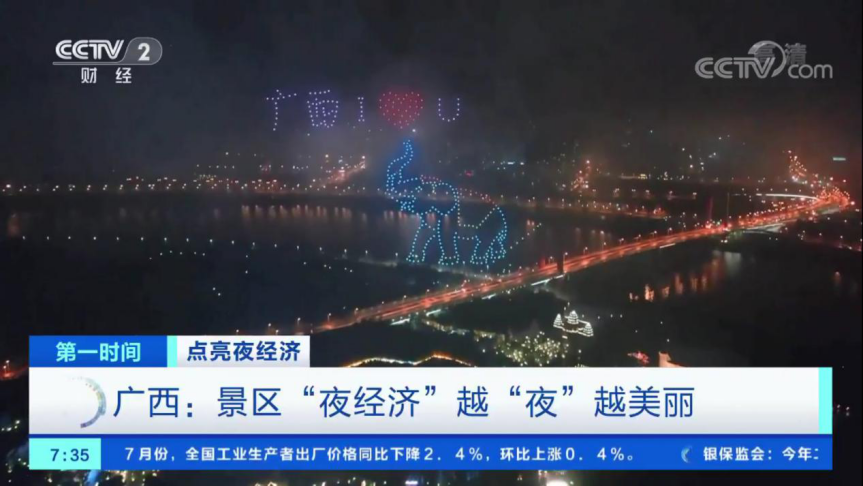 央視新聞報道顯示,夜場活動期間,“南寧方特每晚還有近500架無人機(jī)上演璀璨星空秀,各式各樣的圖案在夜幕中綻放,如同絢麗煙花點亮夜空,讓游玩的結(jié)尾變得儀式感滿滿”。