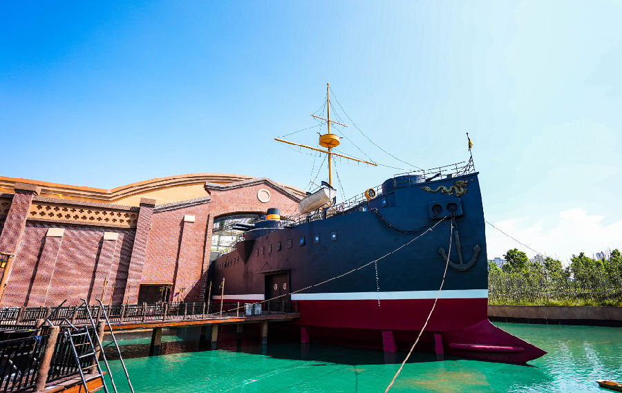 從刷著“十萬工農下吉安”紅軍宣傳標語的瑞金街,到設有“東商洋貨”和“寶麗唱片行”的“十里洋場”上海街,方特東方欲曉通過大量的仿古建筑、布景,打造了多個還原近現代中國不同時期的社會風貌和人文風情的主題街區、小鎮,營造重回歷史的氛圍。