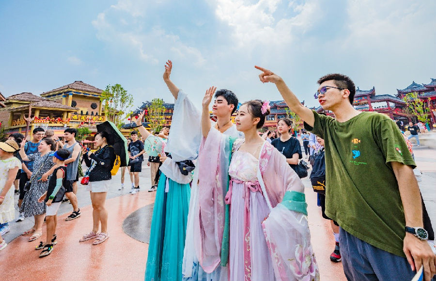 此外,園內更有多家獨具特色的文創周邊商店,小朋友們喜愛的“熊出沒”系列周邊、別具一格的非遺文化產品、以園內項目為設計原型的文創產品……各具特色、琳瑯滿目。不少游客選購了自己心儀的紀念品,滿載而歸。