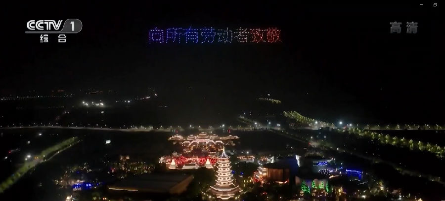今年“五?一”假期,荊州方特傾力打造的大型無(wú)人機(jī)光影秀以“勞動(dòng)創(chuàng)造美好生活 向所有勞動(dòng)者致敬”為主題,無(wú)論是視覺(jué)創(chuàng)意還是效果呈現(xiàn)均進(jìn)行了全方位升級(jí)。在《新聞聯(lián)播》的報(bào)道畫面中,數(shù)千架無(wú)人機(jī)變換出三峽、復(fù)興號(hào)、中國(guó)空間站等圖案,致敬各行各業(yè)的勞動(dòng)者。荊州市民黃女士在接受央視記者的現(xiàn)場(chǎng)采訪時(shí)表示:“無(wú)人機(jī)展現(xiàn)的神州十三號(hào)和中國(guó)空間站,讓我的內(nèi)心感到非常自豪和驕傲。祝愿我們勞動(dòng)者五一節(jié)快樂(lè)!”