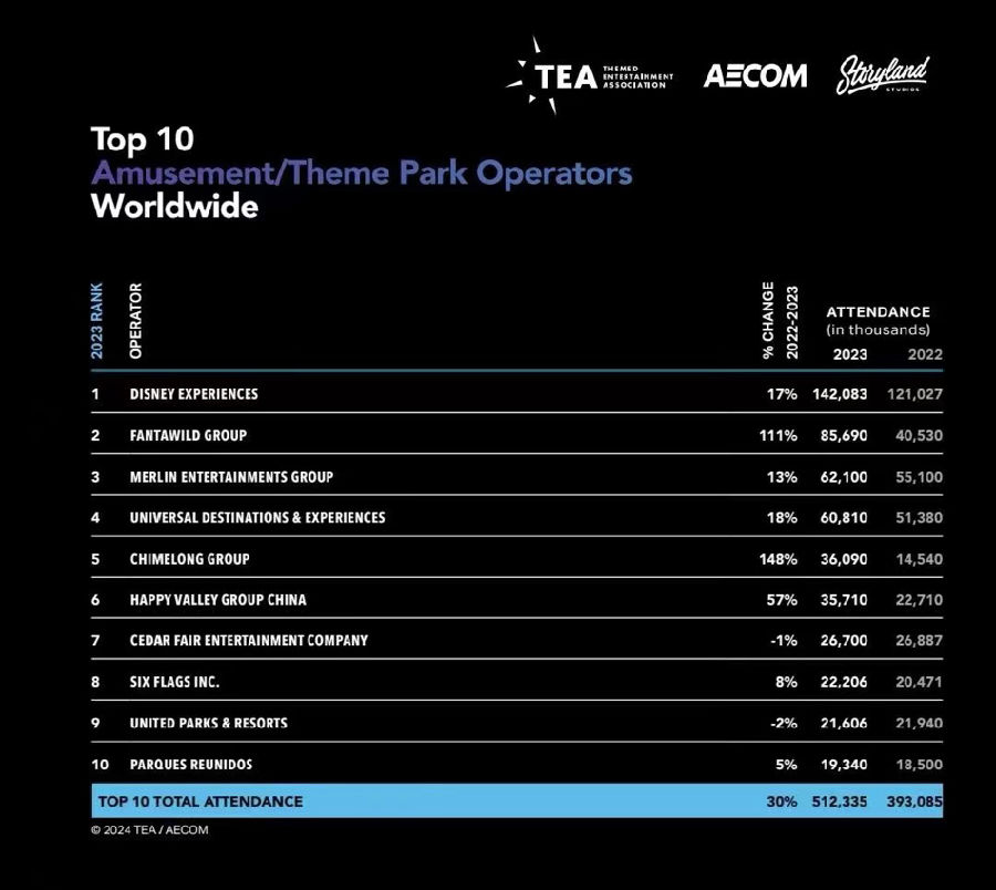 近日,世界主題樂園權威研究機構國際主題娛樂協會(TEA)與美國AECOM集團聯合發布了《2023年度主題樂園和博物館指數》報告。報告顯示,華強方特旗下“方特主題樂園”以8569萬人次的游客接待量,從全球排名第五躍升至全球第二位,相比2022年度的游客量同比大幅增長了111%。