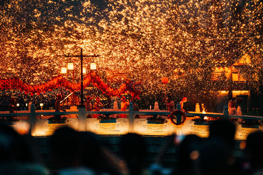 憶年俗,尋年味。綿陽方特融合非遺表演和傳統(tǒng)市集,為游客開啟新春精彩,齊天大圣、山海女神、飛天鳳凰……高科技“山海燈會(huì)”點(diǎn)亮新歲,更有千架無人機(jī)震撼上演“神龍吐息”。徐州方特精心打造大風(fēng)歌漢韻集市,文創(chuàng)、美食、漢風(fēng)等地方特色文化齊聚,與游客吃喝玩樂過大年。天津方特誠邀游客打卡樂呵小鎮(zhèn)、哏兒都廟會(huì),觀賞國粹非遺匯演,感受地道“津味兒”。