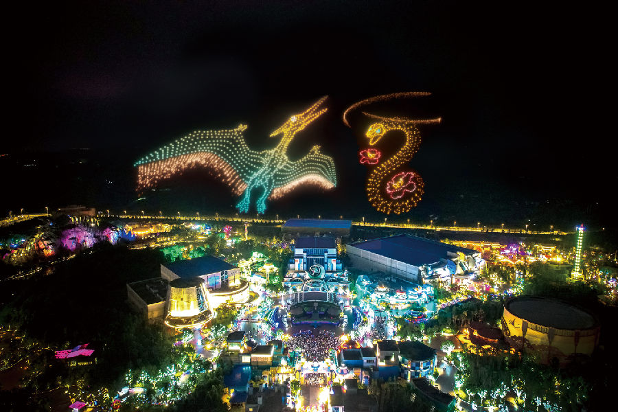 金蛇舞動(dòng)迎春到,花燈璀璨映華年。春節(jié)將至,全國各地方特主題樂園裝扮一新,推出繽紛蛇年春節(jié)主題活動(dòng),打造了“齊天大圣”“山海精靈”“神獸賀春”等巨型主題花燈,民俗好戲、廟會(huì)市集、派對(duì)聯(lián)歡等活動(dòng)輪番登場(chǎng),無人機(jī)煙花秀、主題大巡游驚喜上新,為八方游客奉上年味十足的新春盛宴。