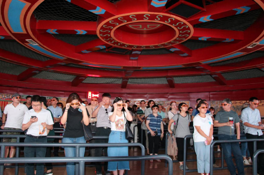 次日,華強方特盛邀參編單位專家全面了解方特主題樂園的不同產(chǎn)品。與會專家先后參觀了方特歡樂世界、方特夢幻王國兩座主題樂園。專家們饒有興致地體驗了《飛越千里江山》、《千古蝶戀》等項目,給予極高的評價和贊譽。大家表示,方特主題樂園的高科技“飛行觀畫”模式,讓人仿佛真的“翱翔”于千里江山間,如臨其境體會了傳世國寶的動人魅力。如夢如幻的“千古蝶戀”運用四面“幻影成像”全息投影舞臺,配合專業(yè)演藝者的現(xiàn)場表演,亦真亦幻地演繹了梁山伯與祝英臺的曠世之戀,高科技與舞臺藝術(shù)完美結(jié)合的演出,贏得現(xiàn)場體驗的專家們一致好評。