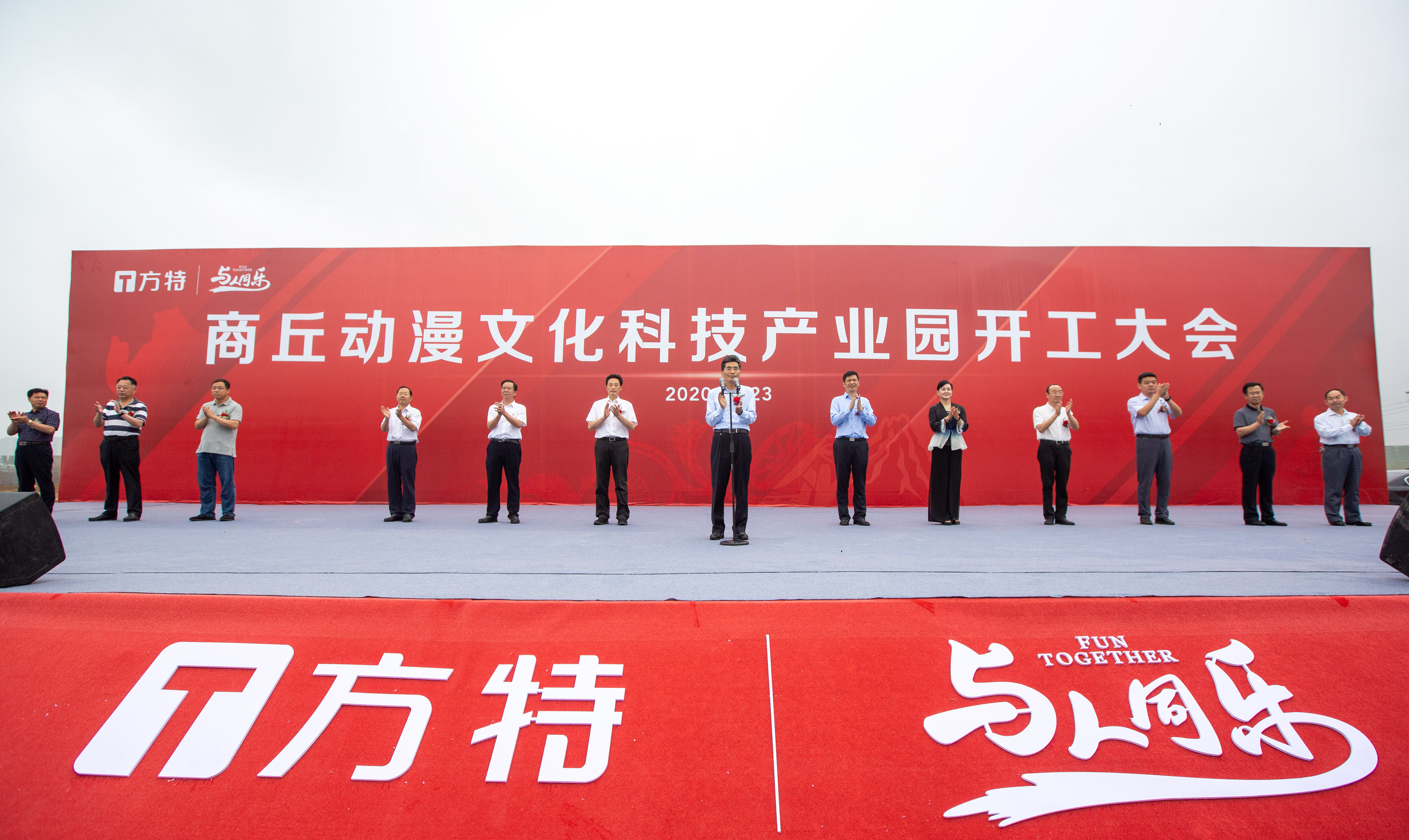 6月23日,商丘動漫文化科技產業園項目開工動員大會在商丘市城鄉一體化示范區隆重舉行。商丘市委書記王戰營,商丘市委副書記、市長張建慧,商丘市人大常委會副主任、示范區黨工委書記何振嶺,華強方特集團總裁劉道強,華強方特集團執行總裁頓忠杰,華強方特副總裁劉永生..