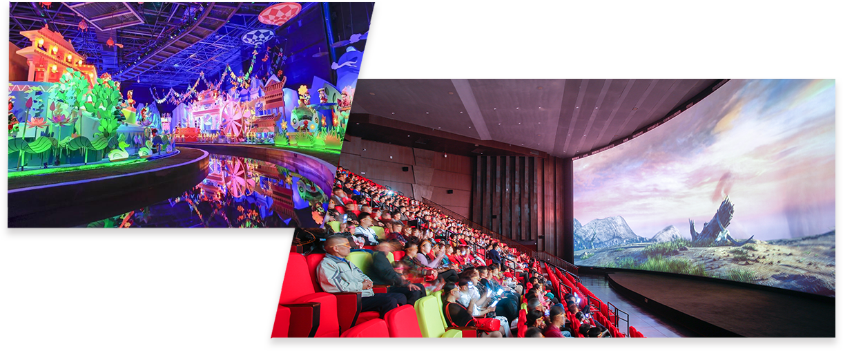 在文化高科技主題樂園板塊,華強(qiáng)方特成功實(shí)現(xiàn)了規(guī)模化發(fā)展和全國性布局,先后在全國20余座城市建成運(yùn)營30余座主題樂園,成功打造了“方特東方神畫” “方特東方欲曉”“方特歡樂世界”“方特水上樂園” “方特東盟神畫”“方特絲路神畫”“方特國色春秋”“方特恐龍王國”“方特?狂野大陸”“熊出沒歡樂港灣”“熊出沒樂園”等十多個主題鮮明、風(fēng)格多樣、體驗豐富的主題樂園品牌,弘揚(yáng)了中華民族精神和中國歷史文化的主旋律,形成文化樣板與示范效應(yīng),產(chǎn)生巨大社會效益,成為各地文化旅游支柱和特色文化旅游品牌。其中,蕪湖方特旅游度假區(qū)榮膺國家5A級旅游景區(qū)。華強(qiáng)方特在主題樂園領(lǐng)域持續(xù)創(chuàng)新,獲得了業(yè)界與游客的大力追捧與交口稱贊,多次攬獲 “摩天獎”、 IAAPA"銅環(huán)獎"等行業(yè)重量級獎項。