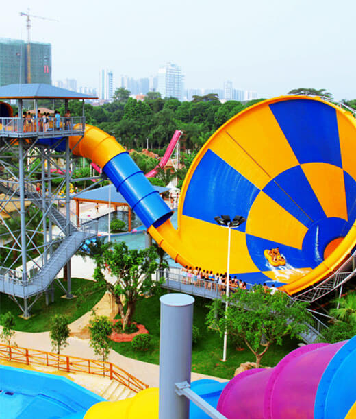 方特水上樂園聚集了多項國際主流精品項目,如《飛躍河谷》、《大喇叭》、《超級碗》、大型《熊出沒水寨》等近13個游樂項目,其中許多項目獲得國際行業(yè)旅游協(xié)會最佳水上設(shè)備獎。